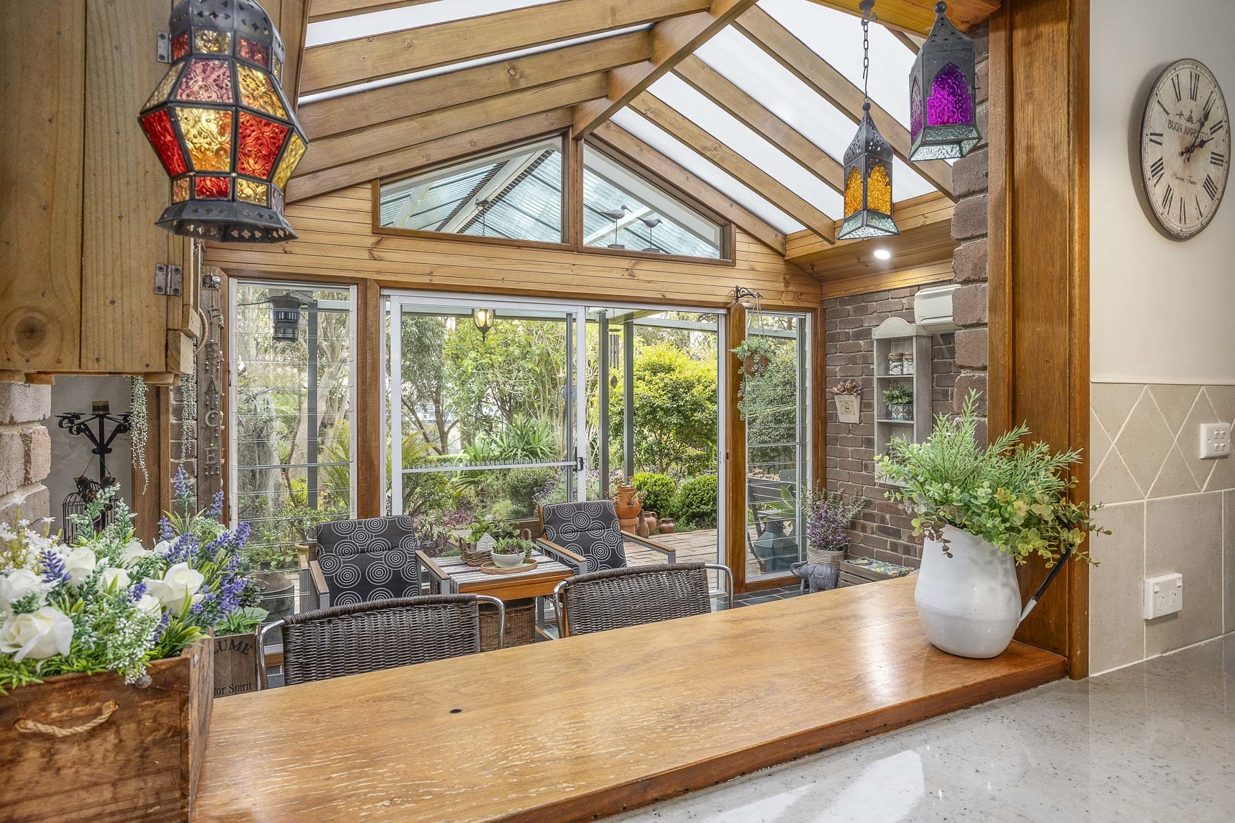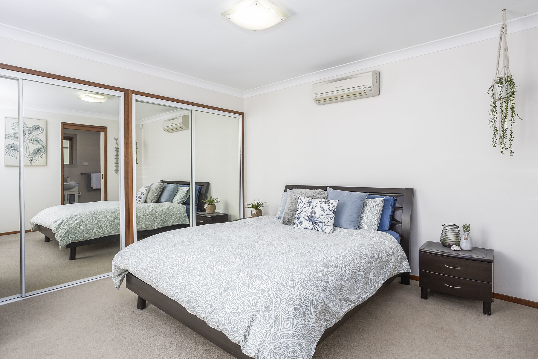 . Flowing interior spaces connect seamlessly to the private backyard oasis . Light and airy single-level layout with a generous and functional floorplan . Alfresco overlooks beautifully landscaped gardens with distant views to the blue mountains . All bedrooms have built-ins plus there is a separate home office . Central kitchen with breakfast bar, multiple living and entertaining areas . Double garage as well as huge triple carport and wide driveway . In the catchment for Alfords Point Public and Menai High School . Modern main bathroom and ensuite, alarm system, CCTV